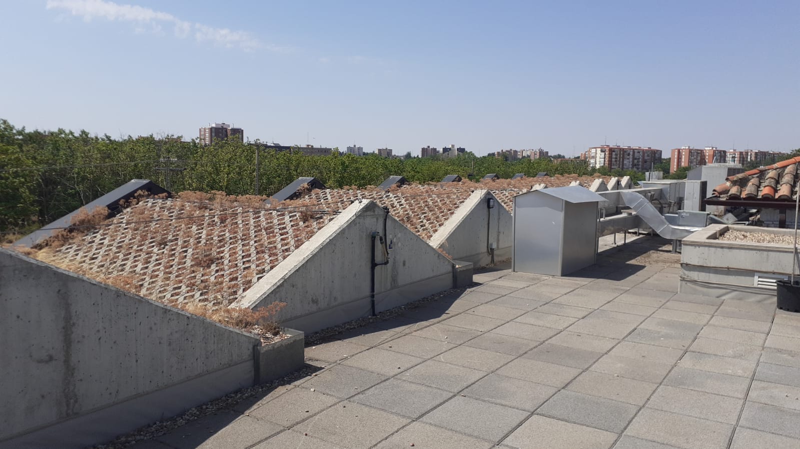 En la visita técnica a “El Despertar”, el pasado mes de julio, recogieron datos y tomaron mediciones y fotografías de los puntos de conexión y de los tejados. Asimismo, pudieron entender las superficies de instalación de módulos solares para seleccionar la estructura soporte adecuada y ubicar las zonas de bajada de canalizaciones eléctricas desde el tejado para poder llegar a las salas técnicas. En estas se ubicarán los inversores CC/AC, próximos a los cuadros generales, donde se ejecutará la conexión a red interior. Igualmente tomaron nota de los espacios de estas salas y de cómo llegar a los cuadros generales y sus espacios interiores para alojar los TI de los controladores de vertido, para conectar el nuevo cableado de generación solar y los amperajes máximos de los mismos, respetando la topología y situación eléctrica del edificio.